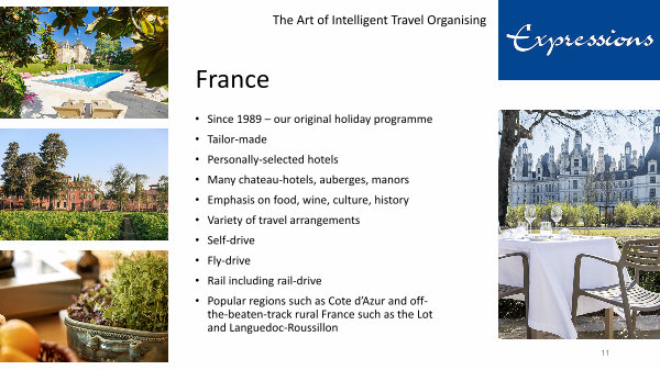 • Popular regions such as Cote d’ Azur and offthe-beaten-track rural France such as the Lot and Languedoc-Roussillon